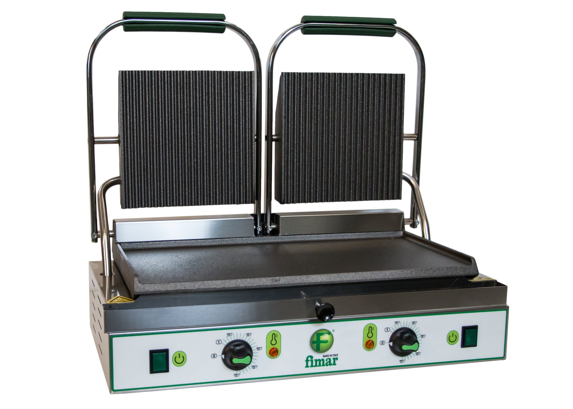 Macchina per cuocere e riscaldare carne, pesce, uova, verdura, formaggi, toast farciti, panini, ecc. Struttura in acciaio inox – piastra di cottura in ghisa sabbiata, in
